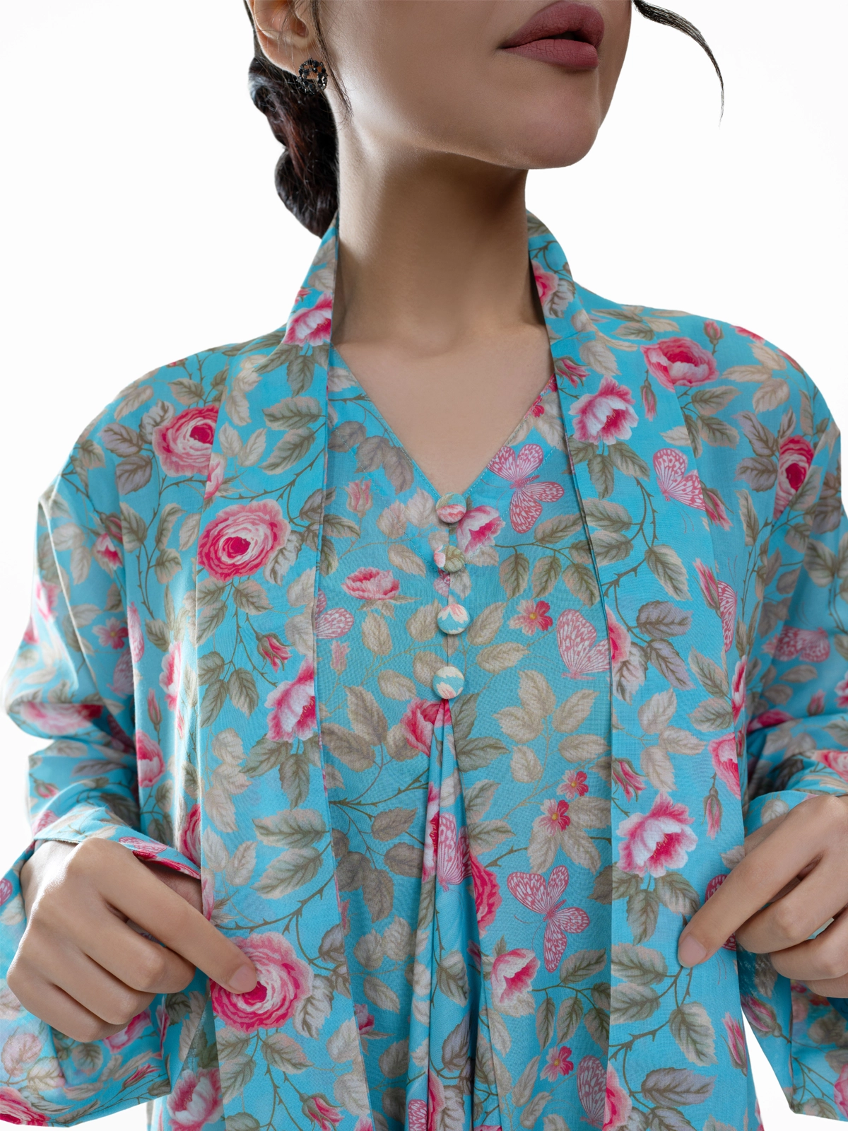 Charming floral cotton kaftan with klosh design, front buttons, and breathable all-day comfort.