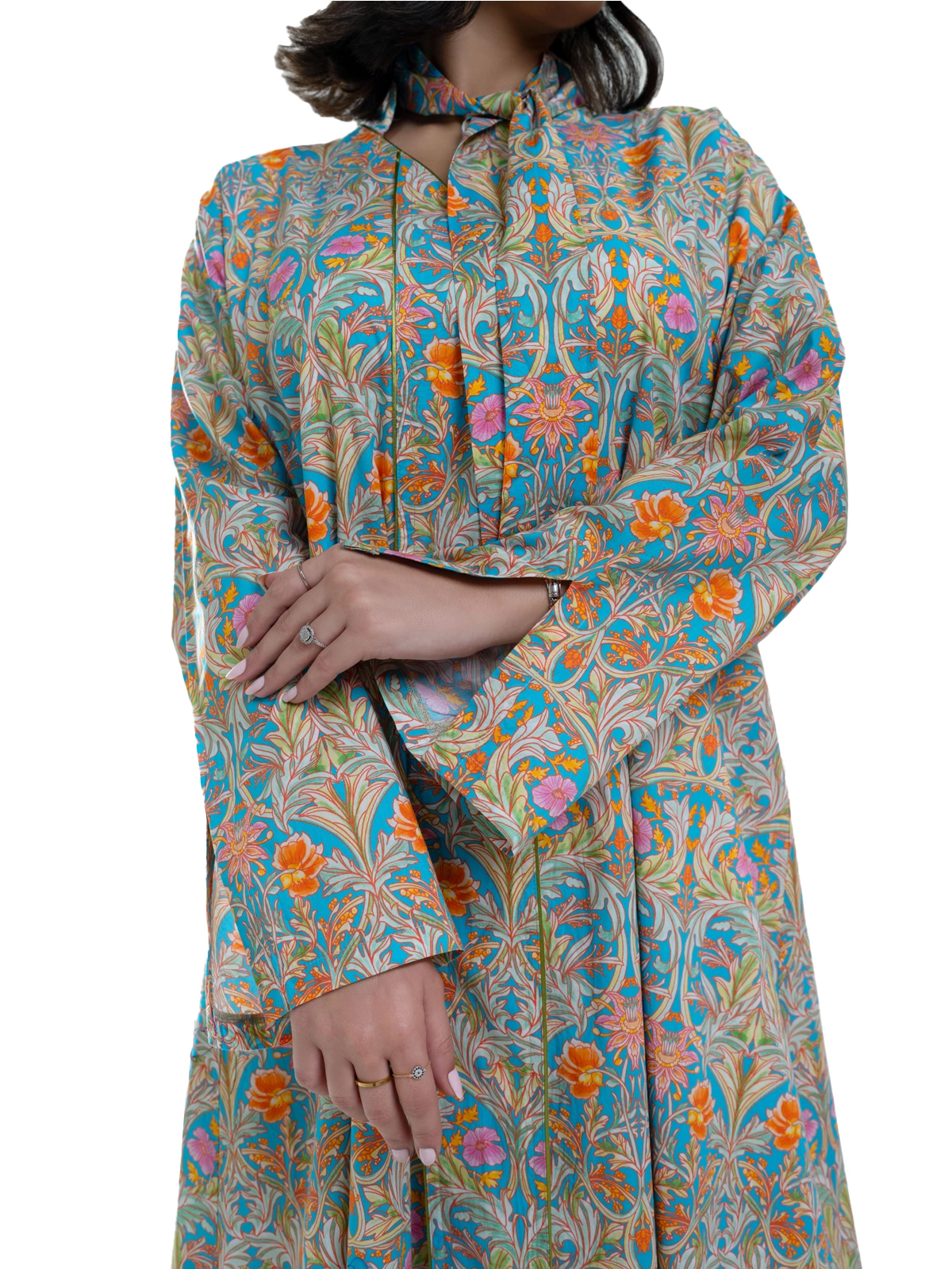 Elegant cotton kaftan with collar neckline, long sleeves, and breathable comfort for everyday style.