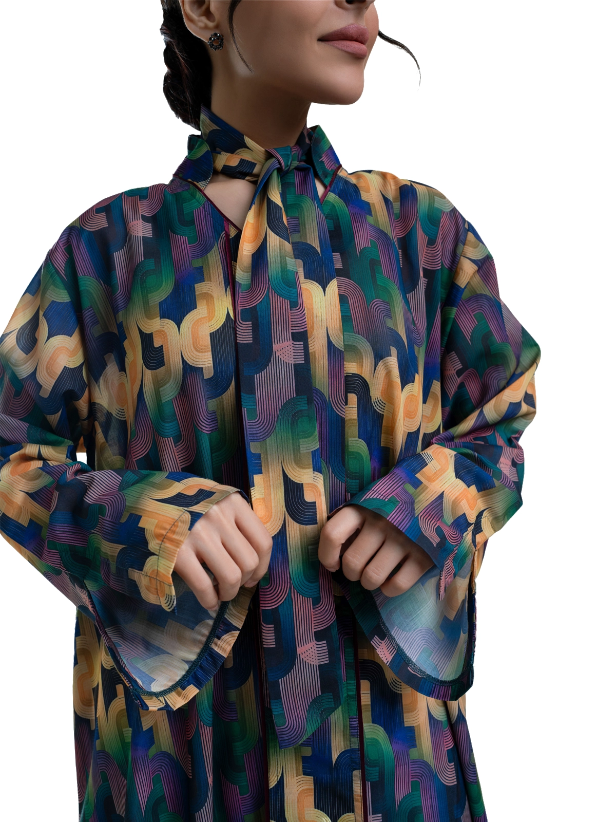 Stylish printed cotton kaftan with collar neckline, long sleeves, and breathable all-day comfort.